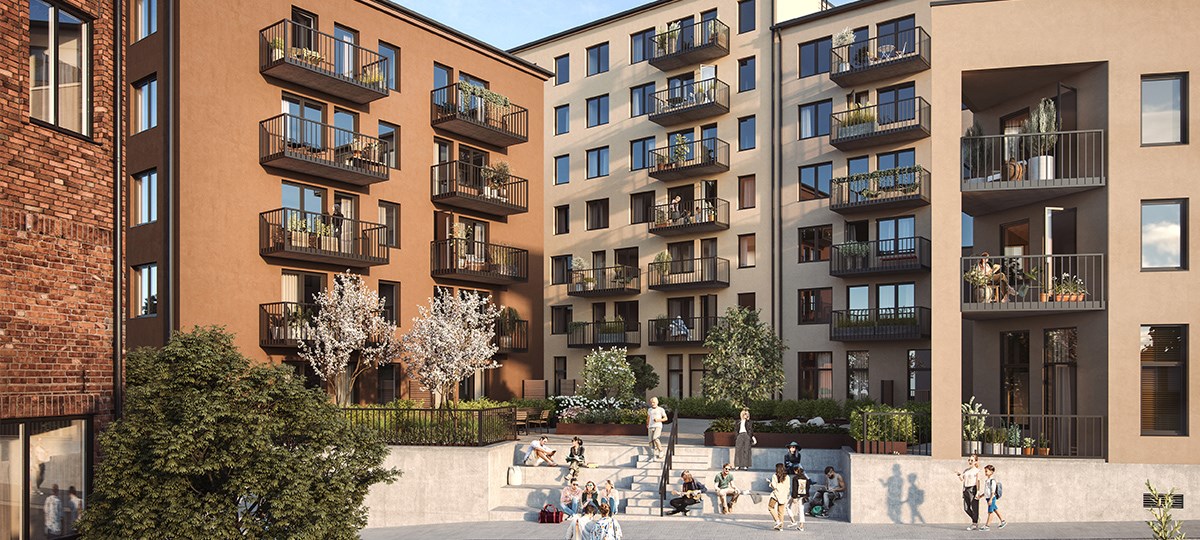 Avtalet med ett värde på cirka 156 mkr avser det andra kvarteret av planerade åtta i den nya stadsdelen i Nacka. Kvarteret består av två hus på sex respektive sju våningar kring en öppen, upphöjd och grönskande innergård. Husen byggs med en blandning av rustika material som granit, tegel, puts, corten och betong och varma inslag av trä och skir grönska. Till husen byggs även ett P-garage om 750 kvm samt tre lokaler i markplan.