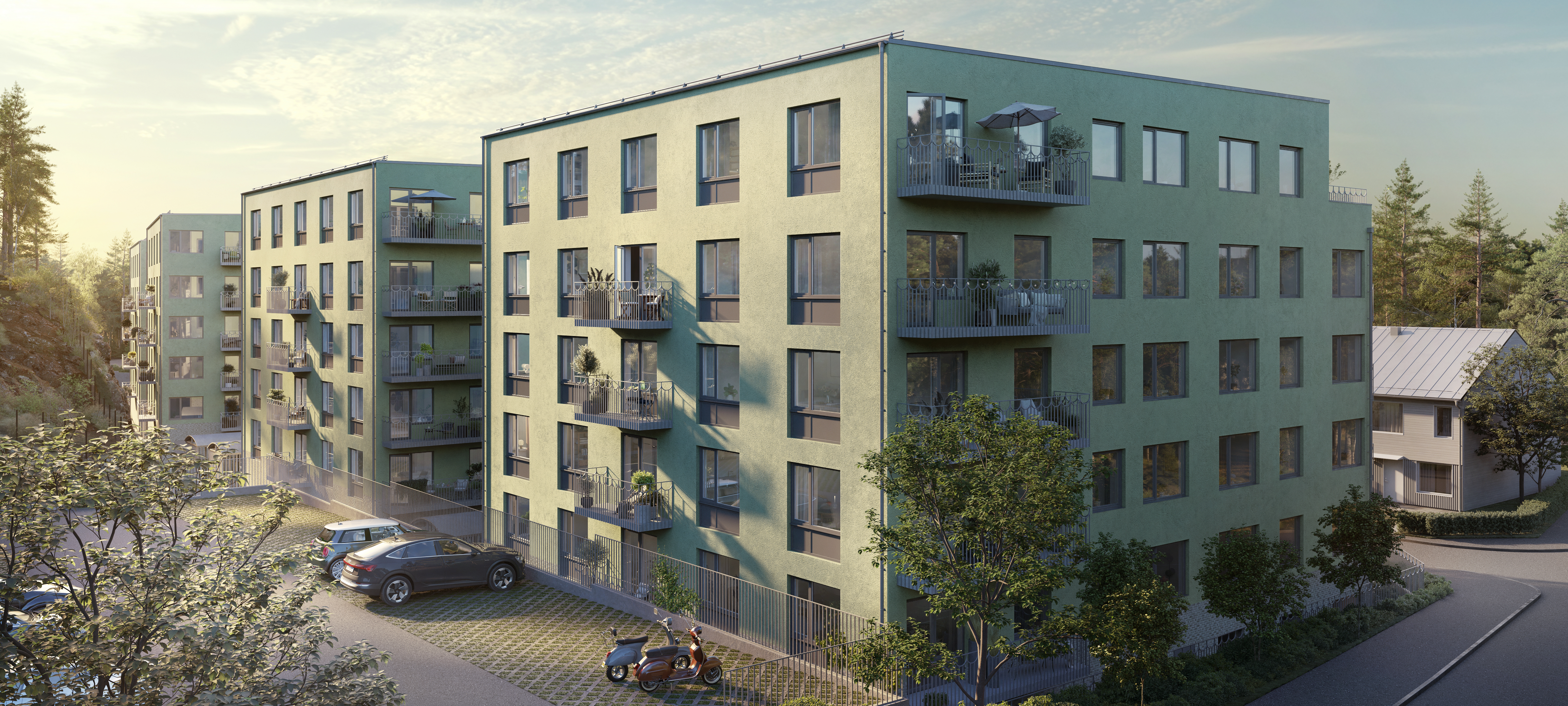 Nu bygger vi på uppdrag av Aros Bostad 156 st nya hyreslägenheter i Snättringe i Huddinge. Ett område med natur och grönområden som nära granne. Lägenheterna är fördelade på fyra hus och varierar i storlek mellan 1-4 rum och kök. Bostäderna byggs för att Svanencertifieras.